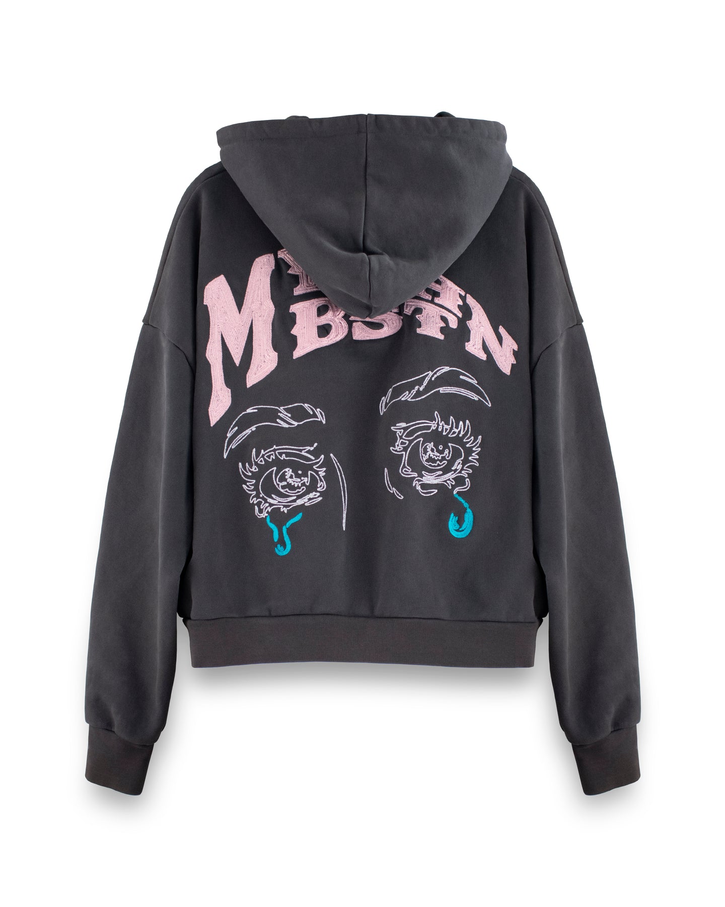 Finished with chain-stitched embroidery, the design features a textured, dimensional look that adds depth and long-lasting quality.
